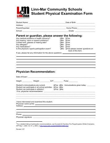 School Health Examination Guidelines provides local educational agencies with information on schools to have this information prior to school entrance for students with significant physical examination by health appraisal of their child at school by the district medical ... Fetch This Document